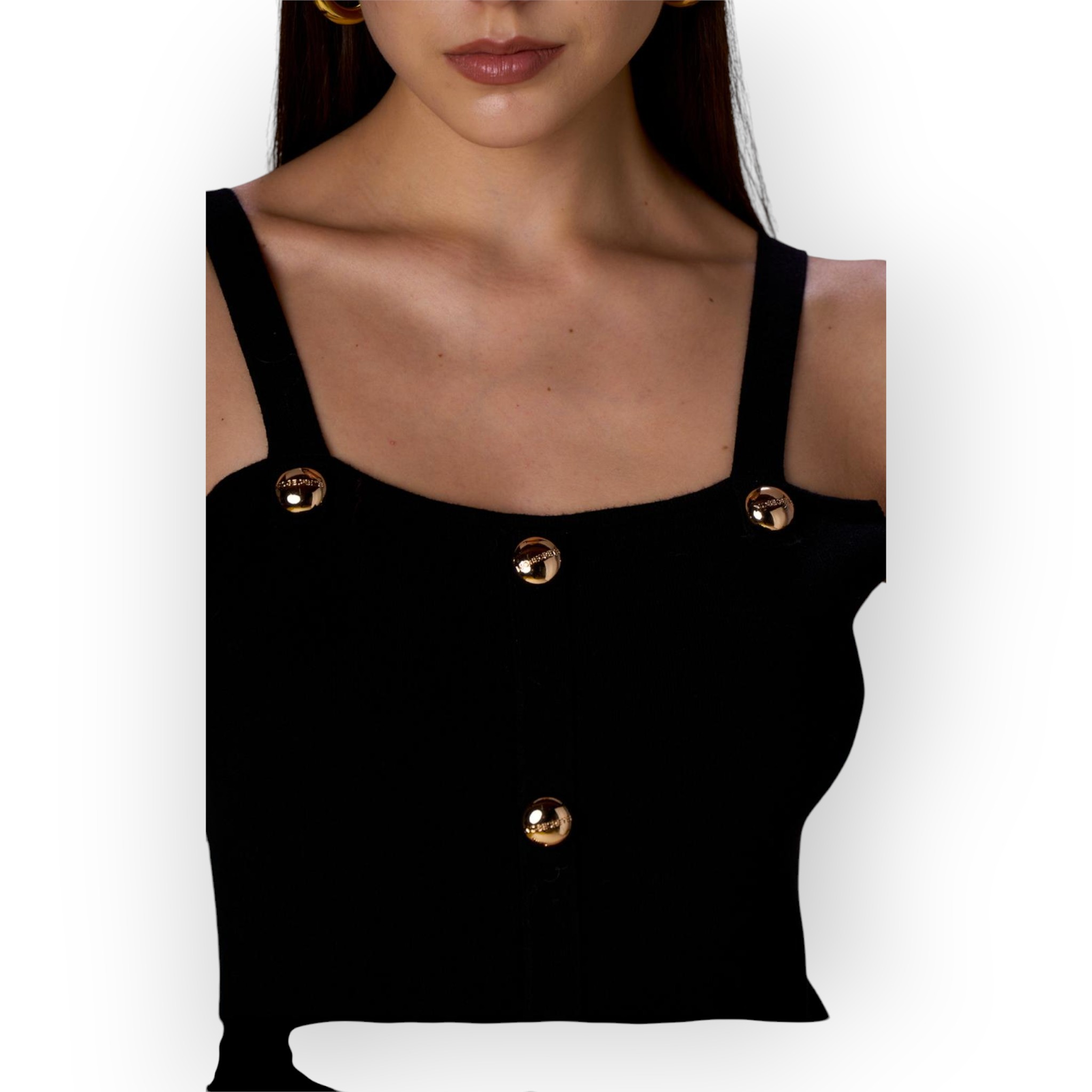 ABITO IN MAGLINA DI VISCOSA CON DOPPIO COLORE NERO E BIANCO, SPALLINE SOTTILI ED IMPREZIOSITO CON BOTTONI LOGATI