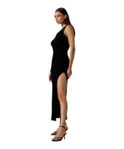 Abito lungo in maglia anelli con spacco laterale