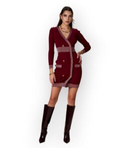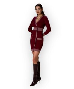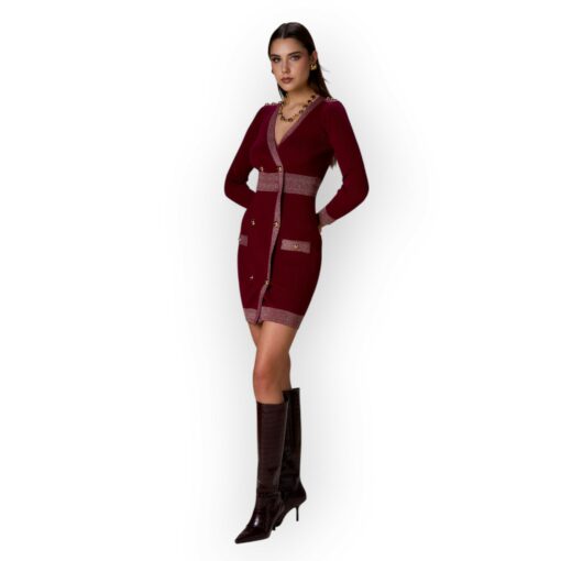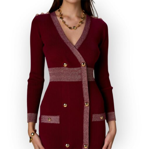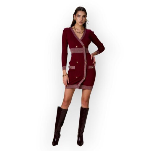 ABITO DOPPIOPETTO CILIEGIA IN MAGLIA COSTINATA E PROFILI IN LUREX