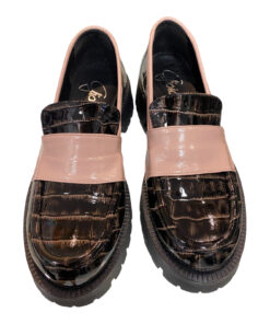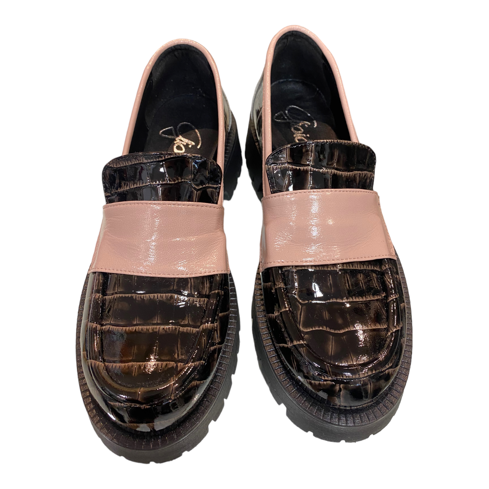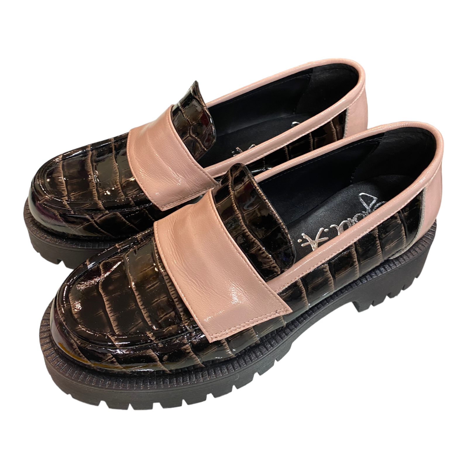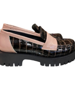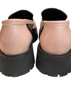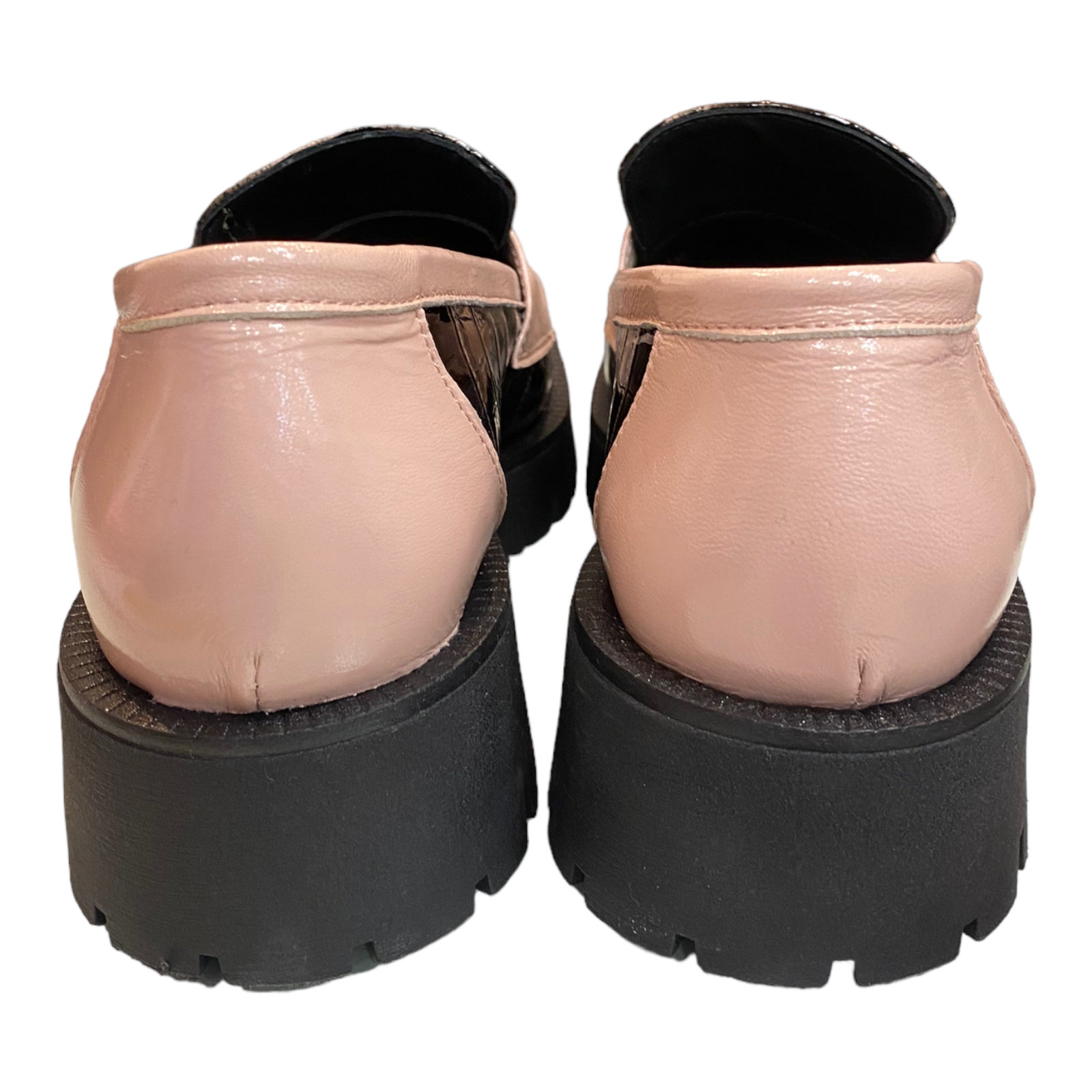 Mocassino in vernice stampa cocco con dettagli in pelle rosa ,in pelle laccata morbita, calzata comoda non adatta ai piedi magri fondo carroarmato