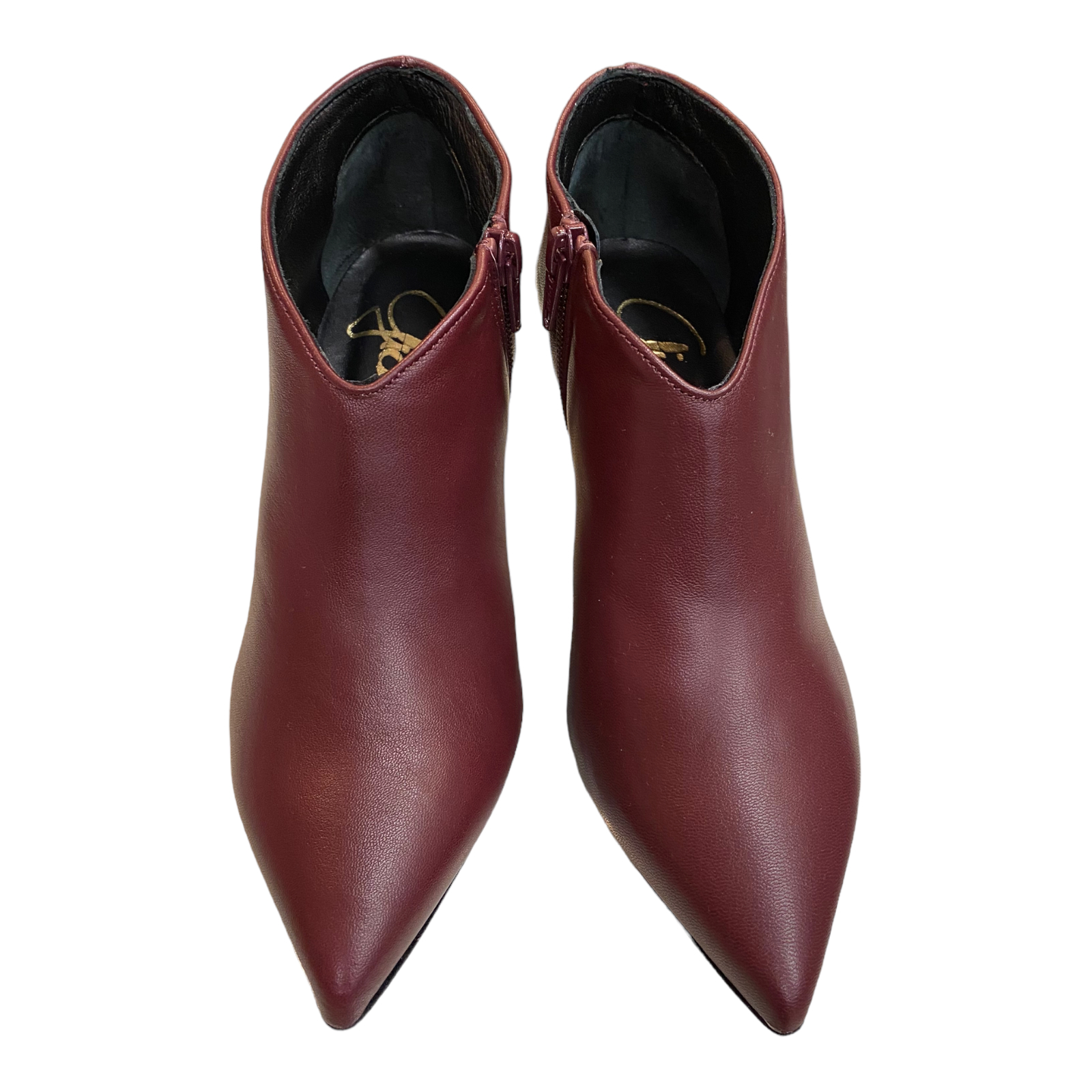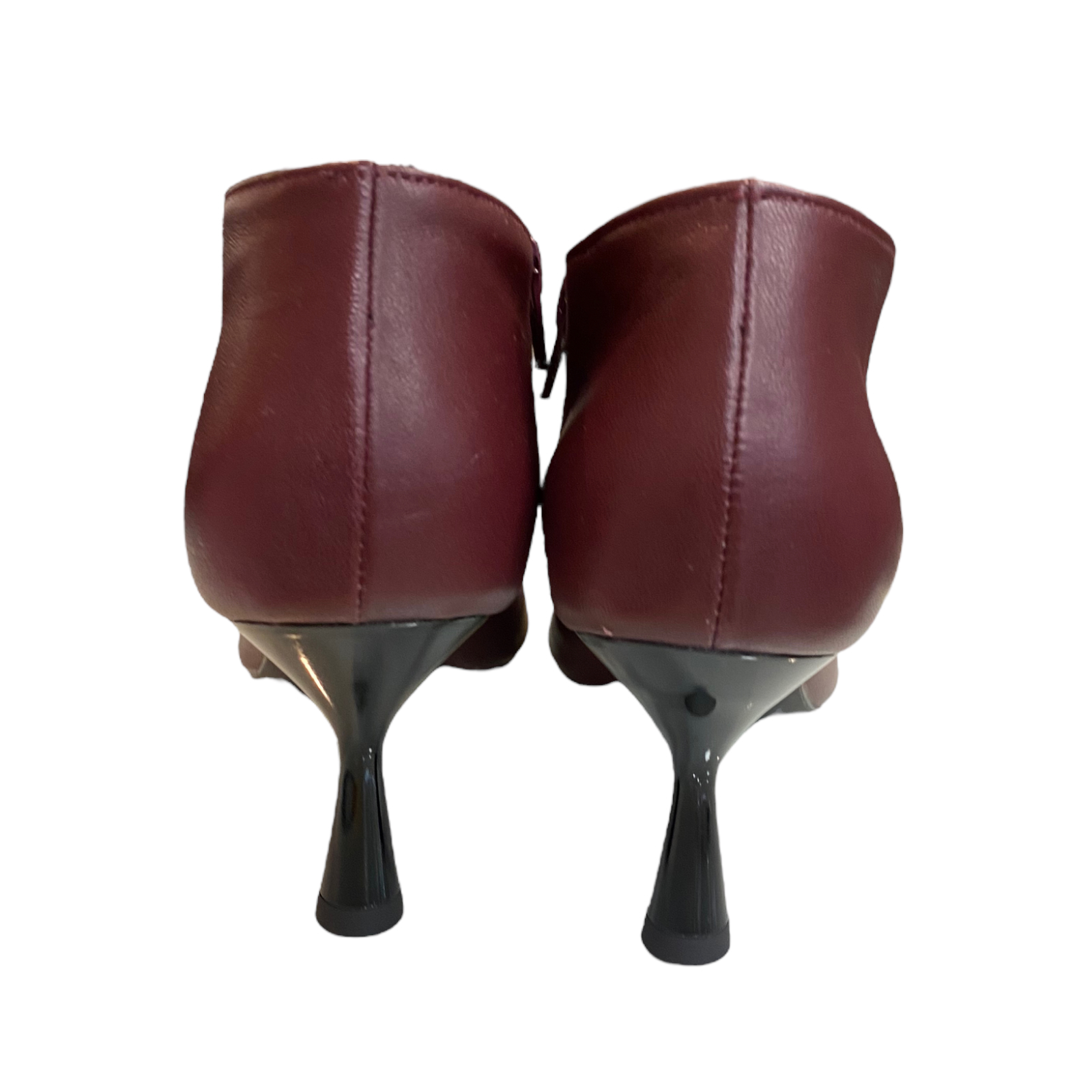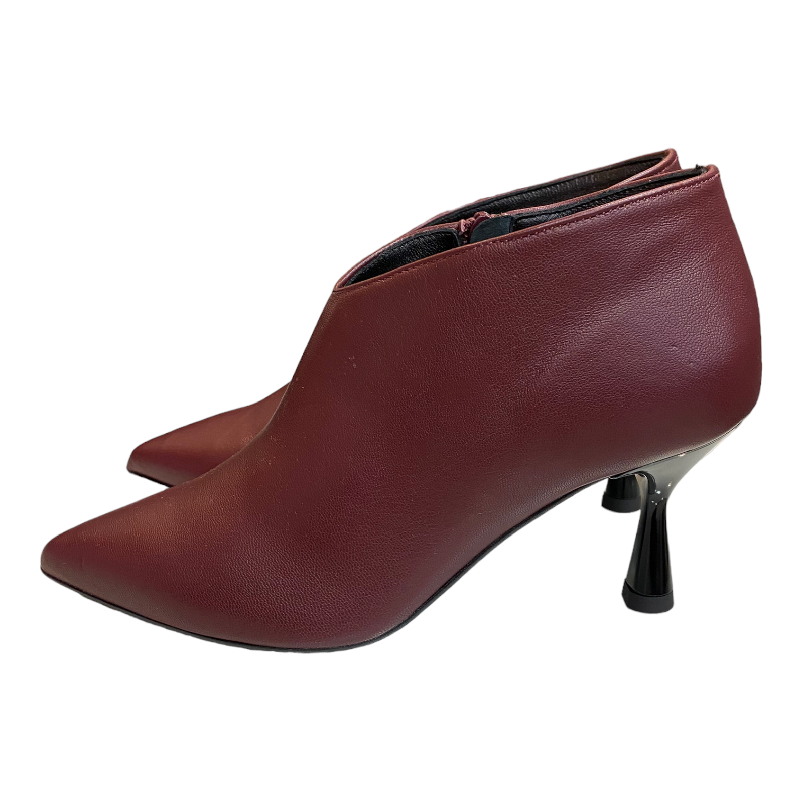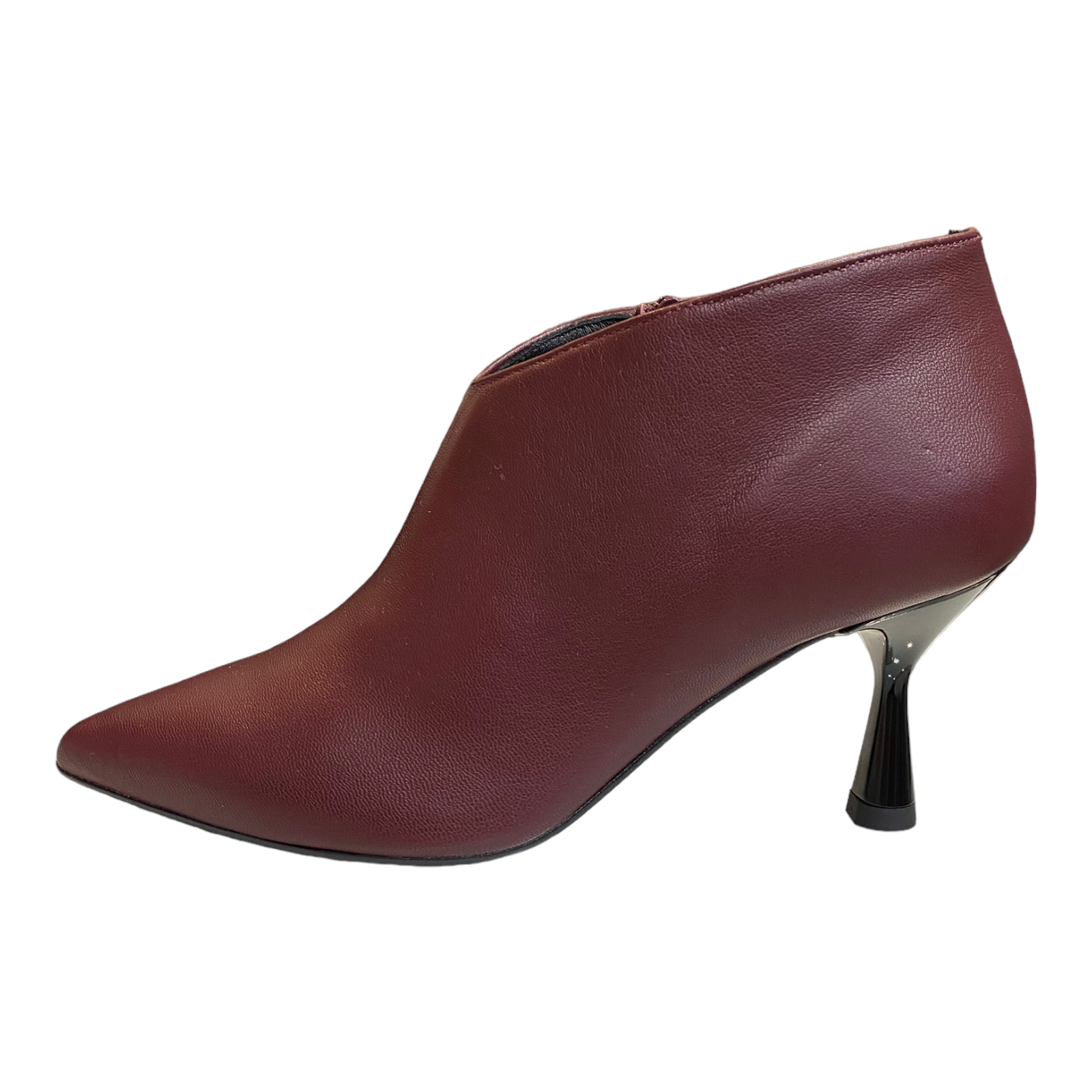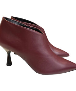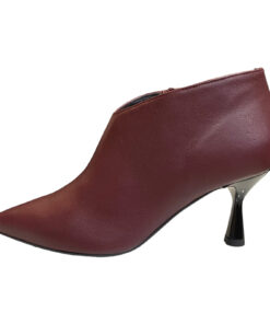 Tronchetto in pelle bordeaux con tacco a rocchetto 8cm fondo in gomma antiscivolo , zip laterale e scollo a v