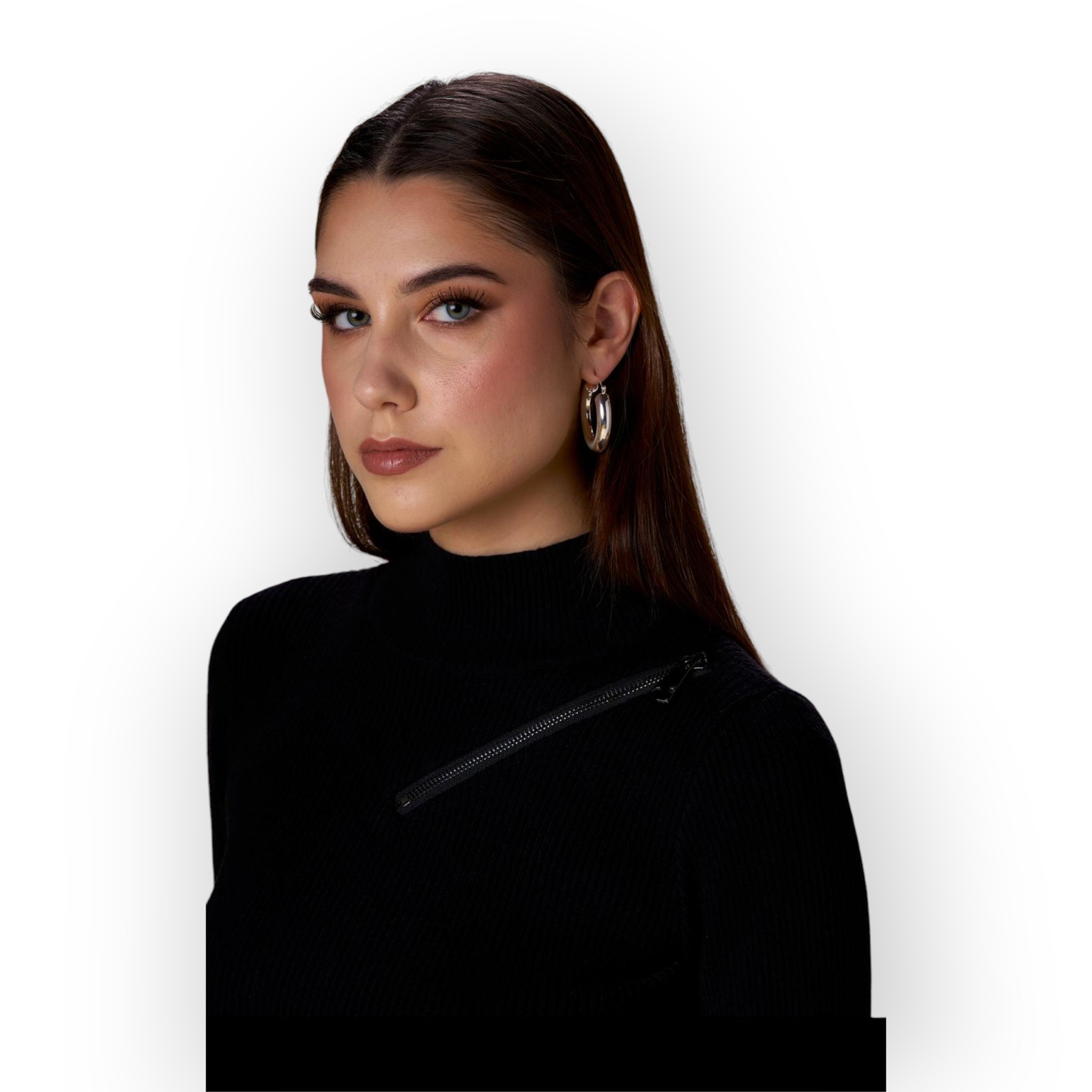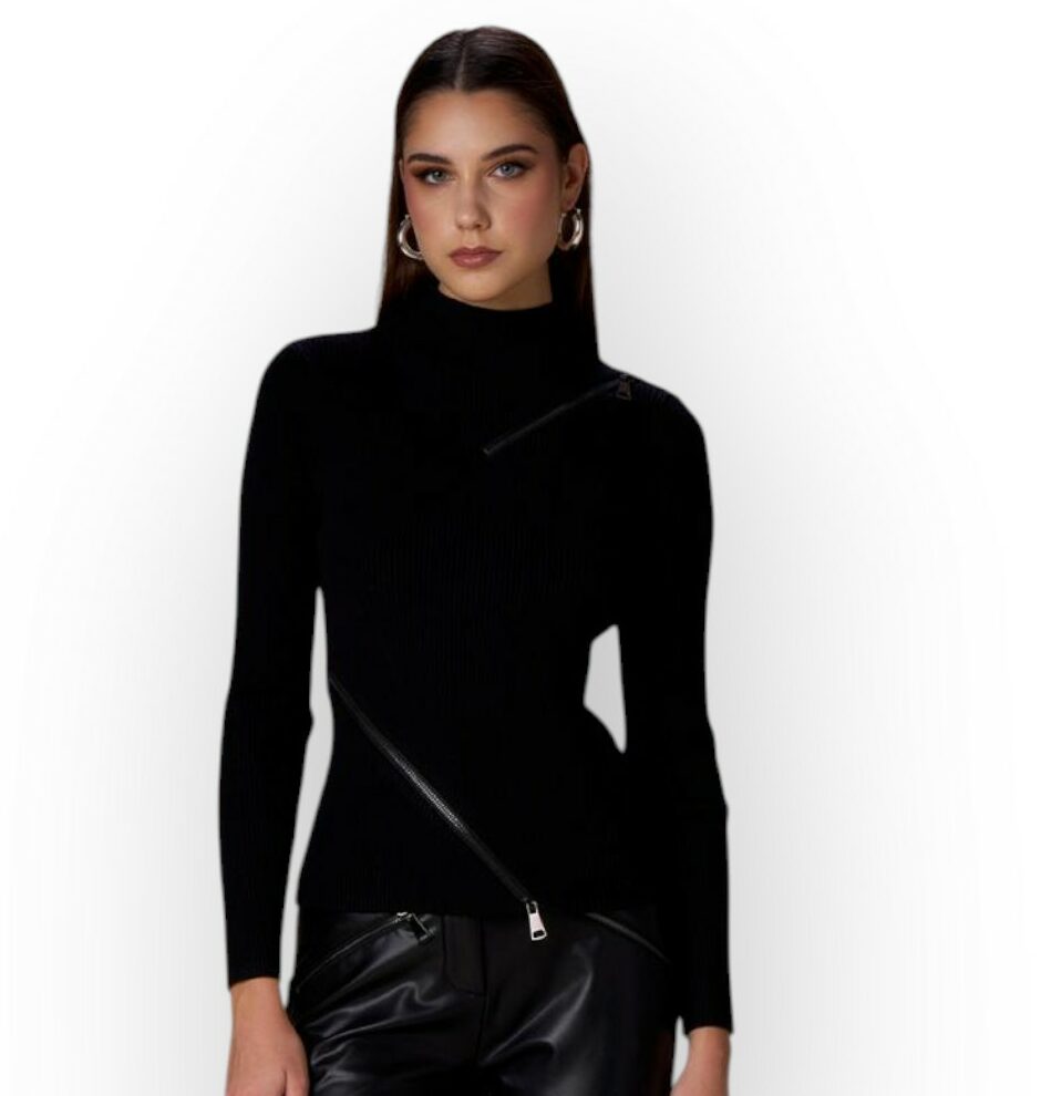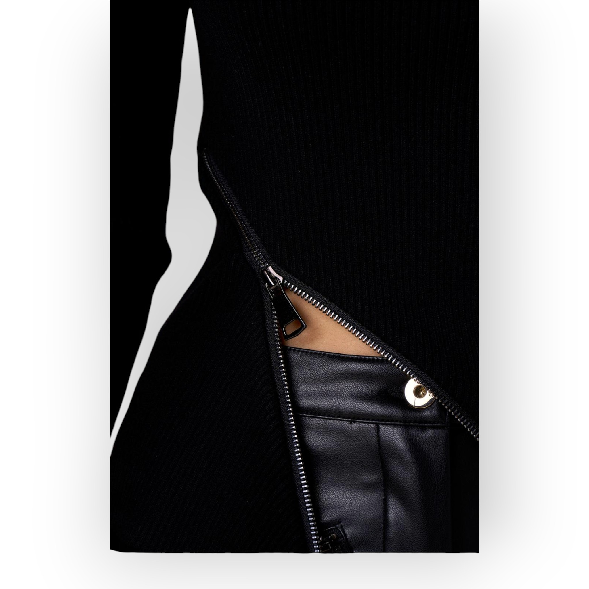 MAGLIA COSTINATA CON DUE ZIP TRASVERSALI CHE SI POSSONO APRIRE CREANDO DEI CUT-OUT