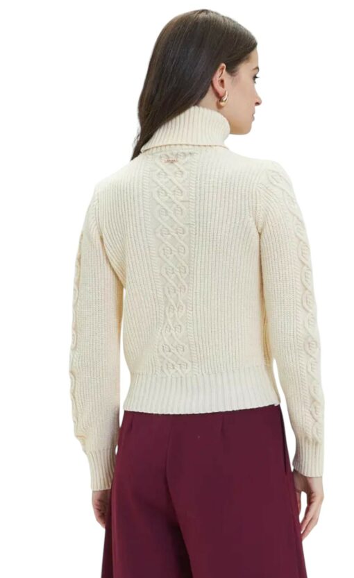 Maglione a collo alto a coste per un maggiore calore.