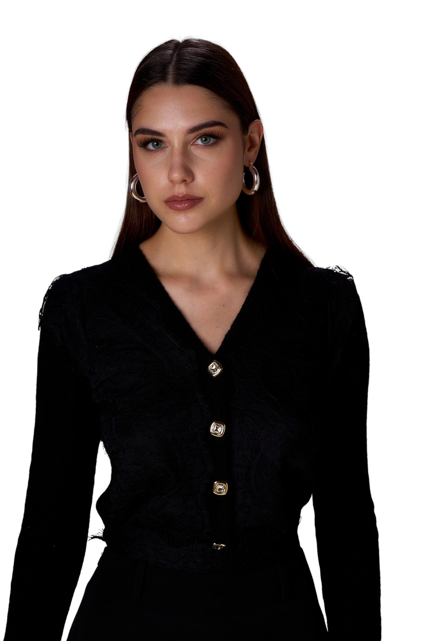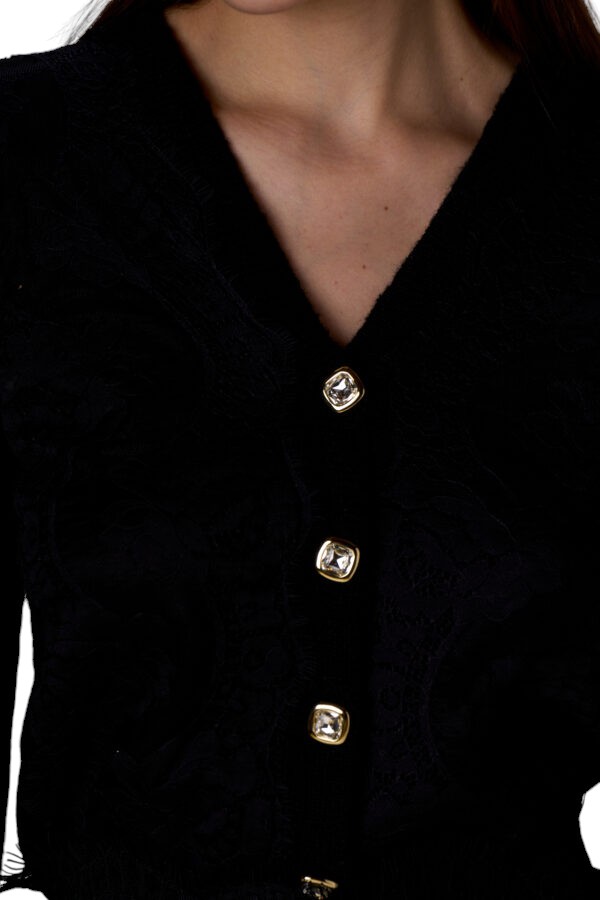 CARDIGAN CON PIZZO E BOTTONI GIOIELLO