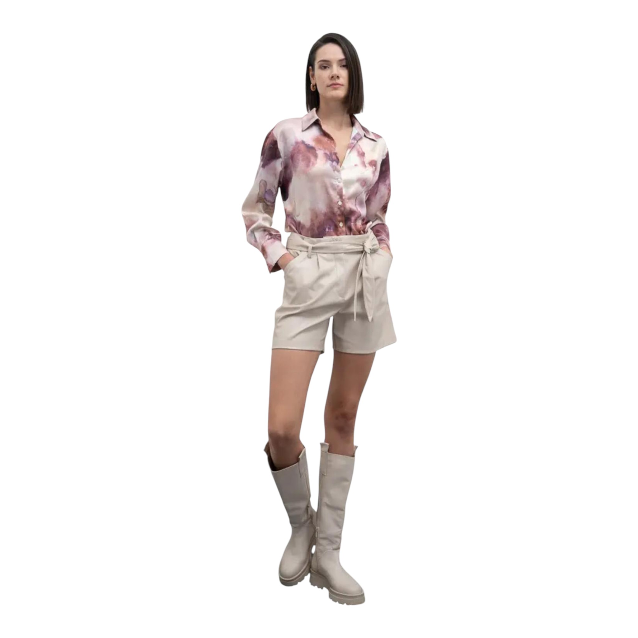 Shorts in pelle ecologica con cintura coordinata.
