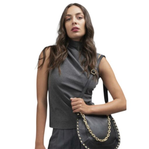 TOP IN PUNTO MILANO, SENZA MANICHE, COLLO MORBIDO CON ARRICCIATURA. SENZA MANICHE E CON ARRICCIATURE SUI FIANCHI. VESTIBILITA’ SLIM. COMPOSIZIONE: 68% VISCOSA 27% NYLON 5% SPANDEX
