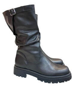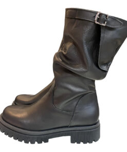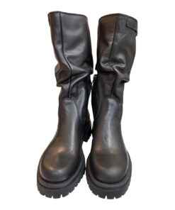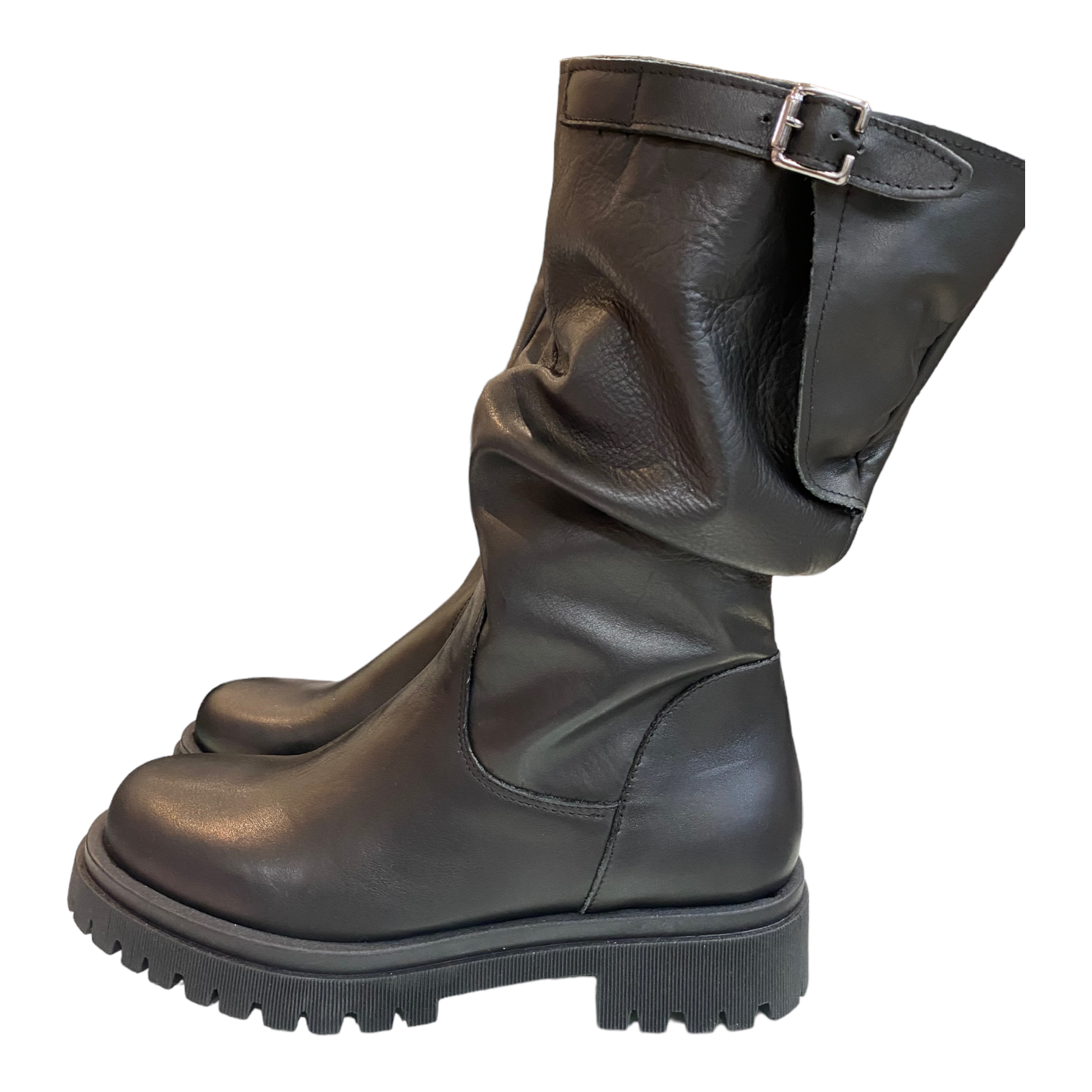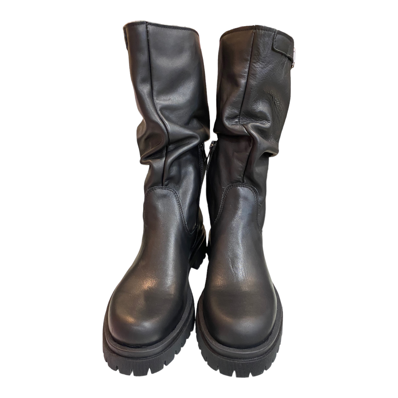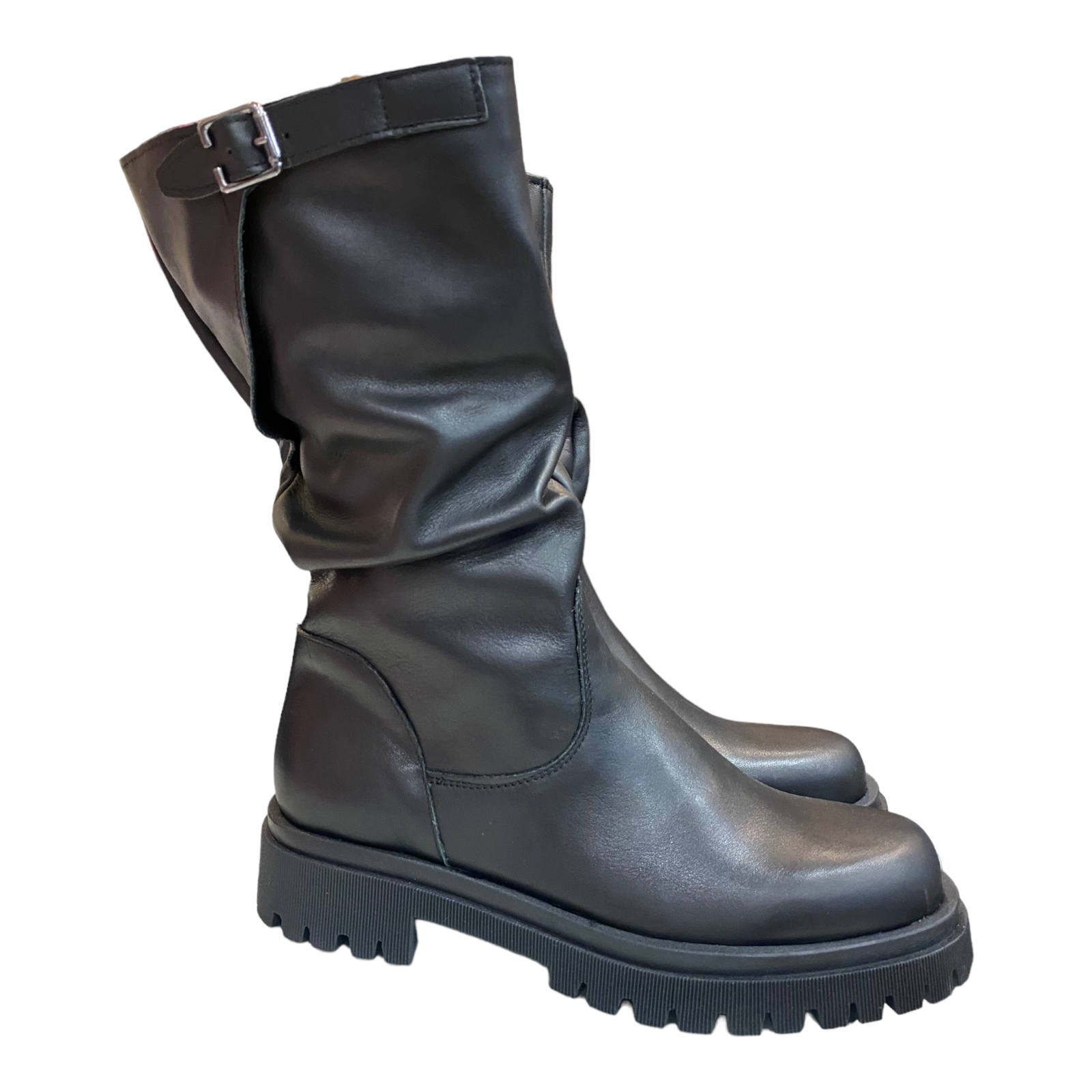 Stivale in pelle con gambale arricciato , zip a merà stivale e fondo carroarmato , interno foderato